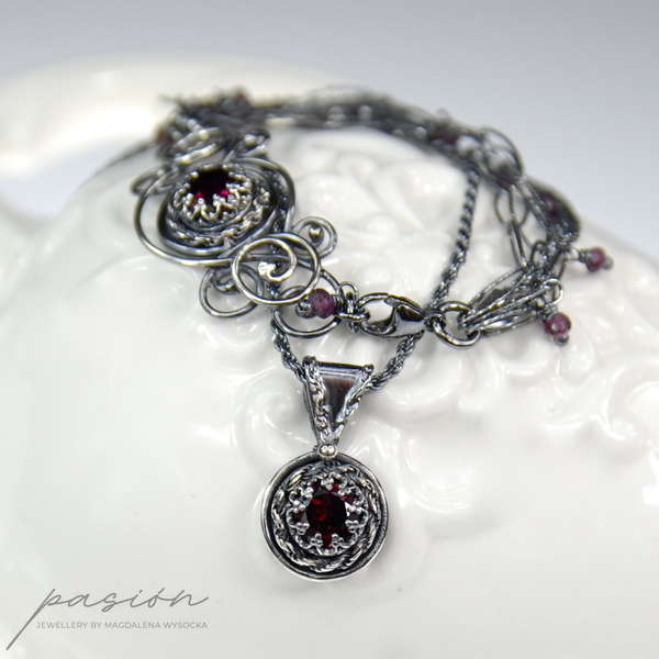 Zmysłowy, ale jednocześnie subtelny w formie naszyjnik wykonany od podstaw ręcznie ze srebra pierwszej próby 925.