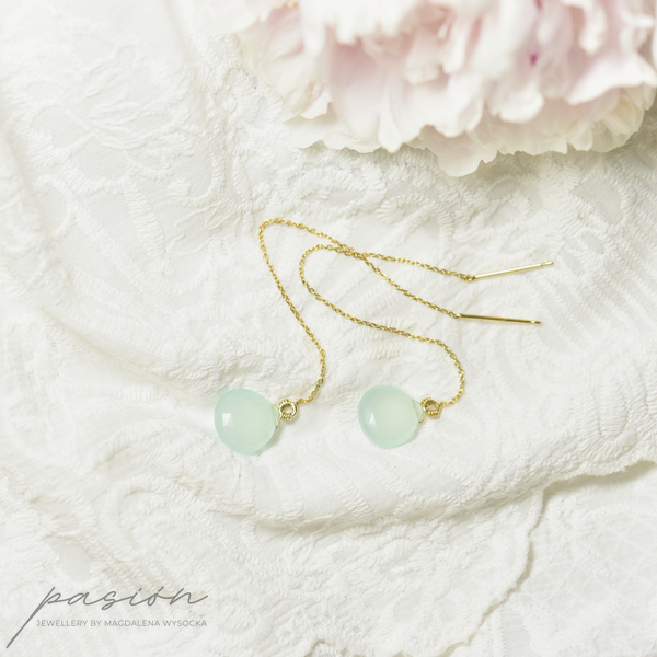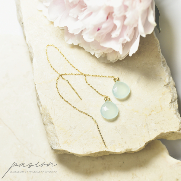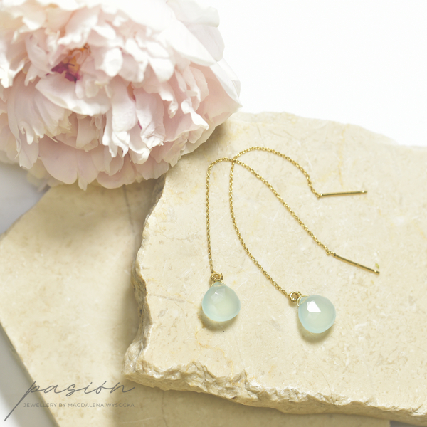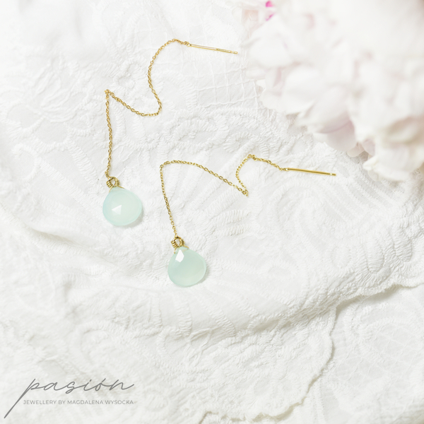 Wyjątkowy morski odcień Chalcedonów będzie stanowić niezobowiązujący drobiazg uzupełniający wakacyjne kreacje.