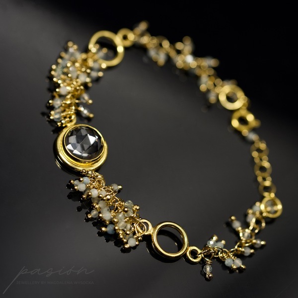 Urocza bransoletka wykonana ręcznie ze srebra próby 925 złoconego 24ct złotem.