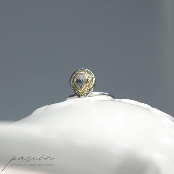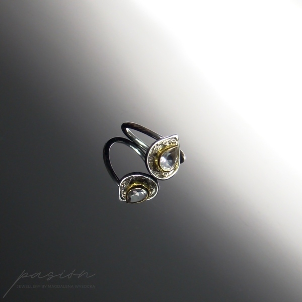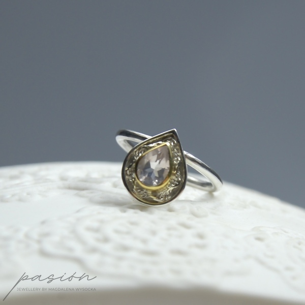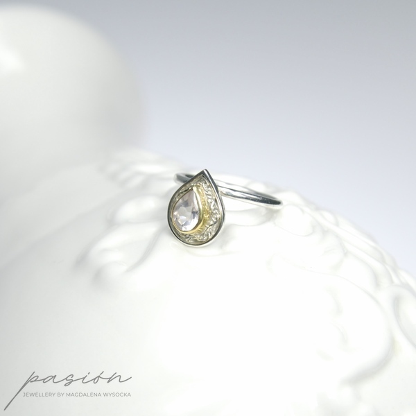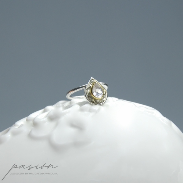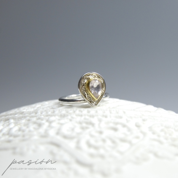 Delikatny, srebrno-złoty pierścionek wykonany z ręcznie ze Srebra pierwszej próby 925 miejscowo pozłacanego 24ct Złotem.