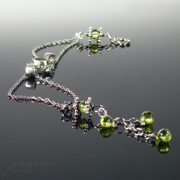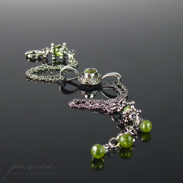 Subtelna bransoletka wykonana ręcznie od podstaw ze srebra próby 925 oraz lemonkowych Peridotów.