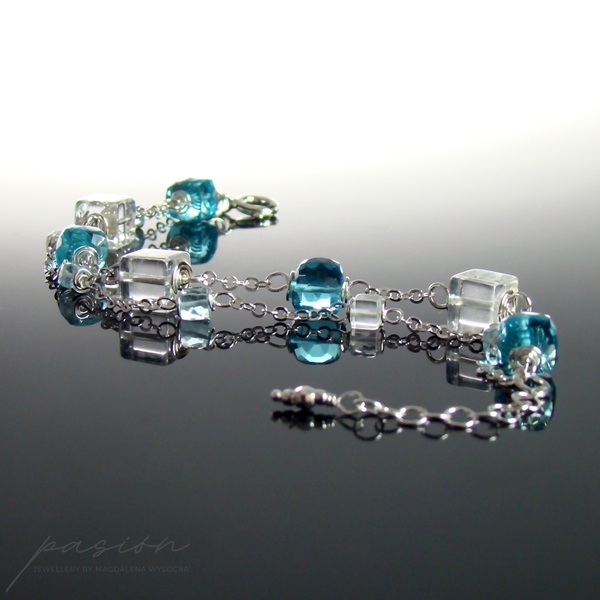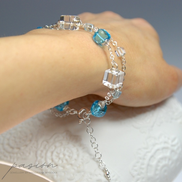 Mieniąca sie krystalicznym, arktycznym blaskiem bransoletka wykonana ręcznie od podstaw ze srebra próby 925.
