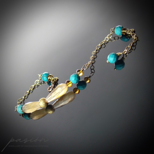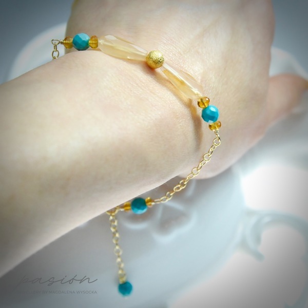 Złota, delikatna bransoletka z letniej kolekcji "SUMMER PARADISE" wykonana ręcznie od podstaw ze złoconeego 24ct złotem srebra.