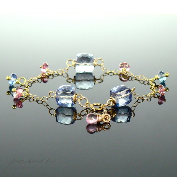 Idealna na lato bransoletka z KOLEKCJI SUMMER DELIGHT, ozdobiona ręcznie naturalnymi kamieniami w uroczym zestawieniu błękitu i różu.